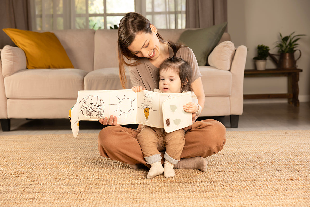 The book’s contrasting design provides essential visual stimulation from day one. Place the book’s contrasting illustrations side at a comfortable distance from your baby (8-12 inches) and let them try to focus their gaze on the images.